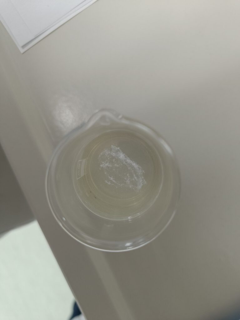 Im letzten Experiment machten die Schülerinnen und Schüler schließlich ihre eigene DNA sichtbar. Dazu mussten alle zunächst mit einer Salzwasserlösung gurgeln, um Zellen aus der Mundschleimhaut zu lösen. Der Geschmack war zwar gewöhnungsbedürftig, doch das Ergebnis entschädigte dafür. Nach dem Gurgeln wurde die Lösung in ein Reagenzglas gegeben, mit etwas Spülmittel versetzt und anschließend für etwa fünf Minuten in ein 60 Grad warmes Wasserbad gestellt. Danach konnten alle ihre eigene DNA als weiße Fäden sehen – und diese sogar in kleinen Behältern mit nach Hause nehmen.