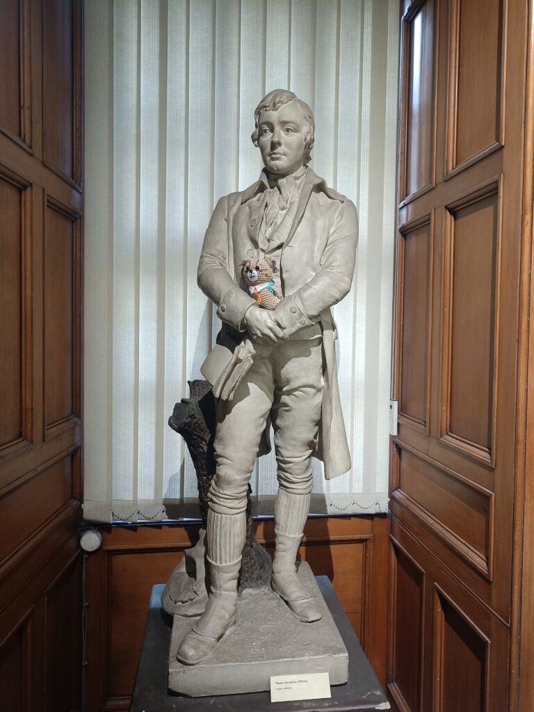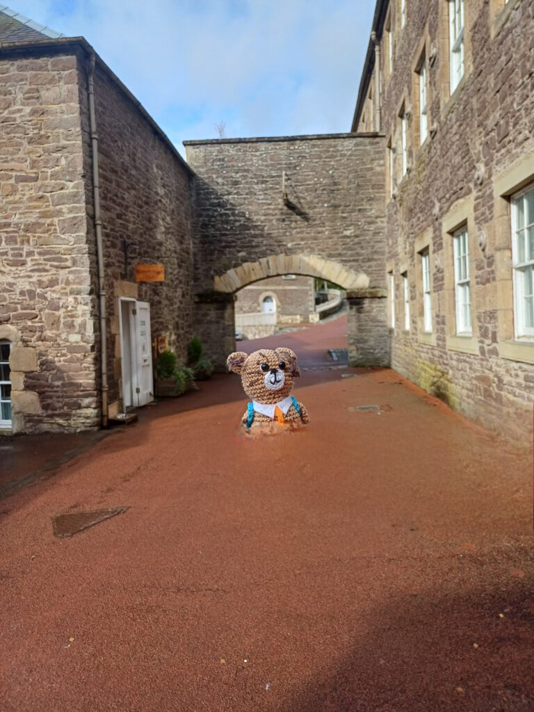Dort konnten früher junge Liebespaare heiraten, ohne ihre Eltern um Erlaubnis zu fragen. Ich war froh, dass niemand auf die Idee kam, mich zu verheiraten. Dann ging es weiter nach New Lanark, eine alte Textilfabrik-Siedlung mit spannender Geschichte. Typisch schottisch empfing uns feiner Nieselregen, aber ich war sicher in Paulas Jackentasche verstaut. In einer Ausstellung fuhren wir in kleinen Gondeln durch die Geschichte des Mädchens Annie McLeod, das dort gearbeitet hatte. Es war spannend, aber auch traurig, sogar ein kleiner Bobcat musste da mal schlucken.